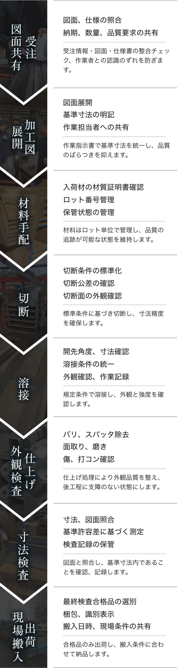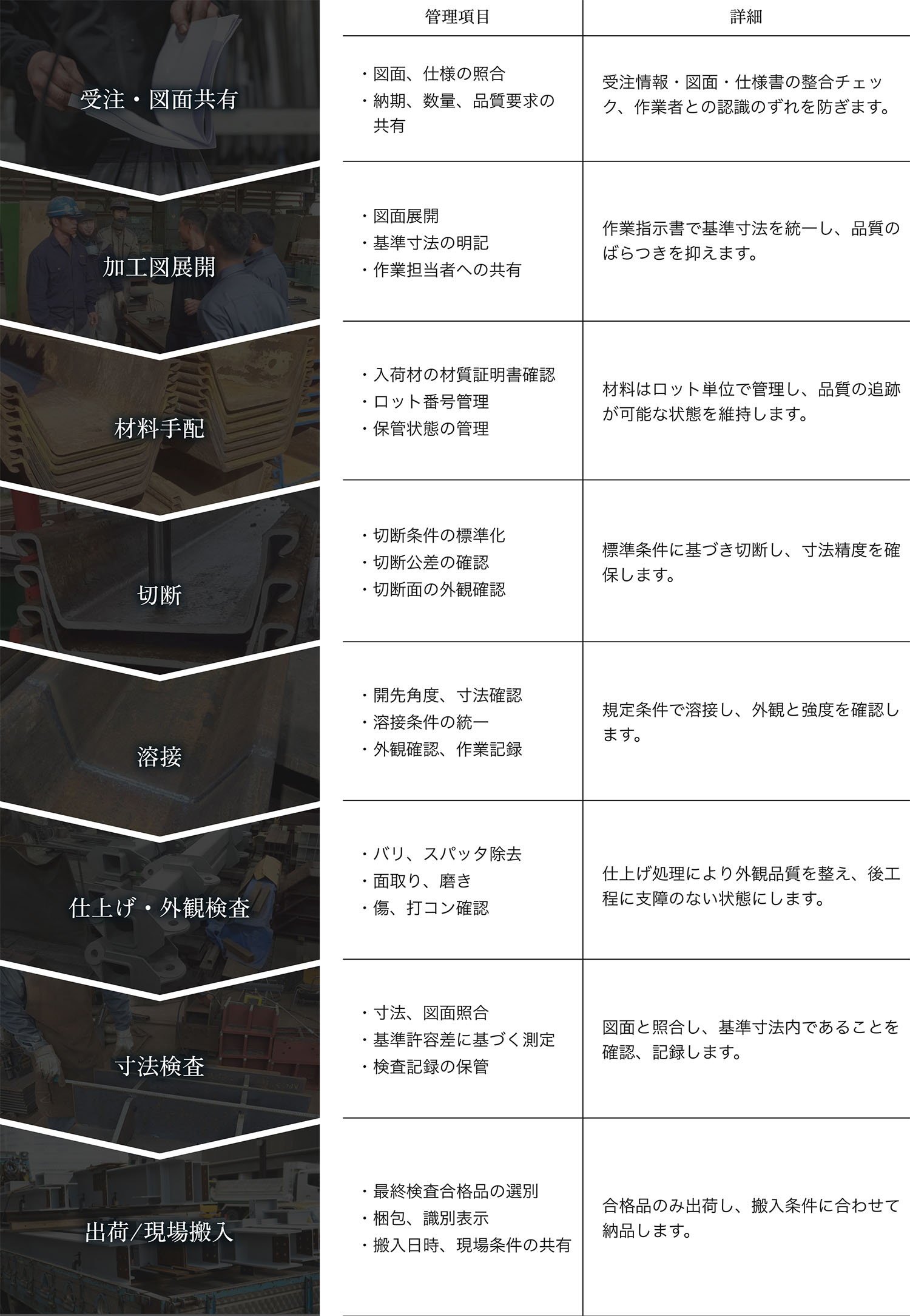 当社では、各工程における作業手順と検査基準を明確に定め、
